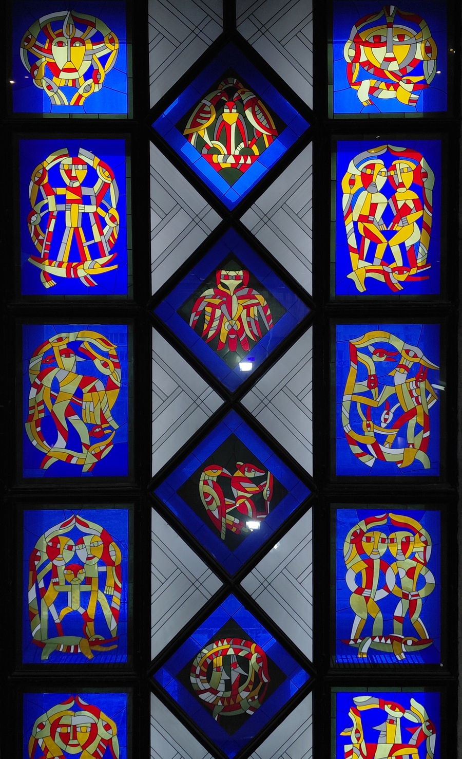 Серия витражей в интерьере отеля УРАЛ с сайта «Пермский звериный стиль» со статьей о проекте
