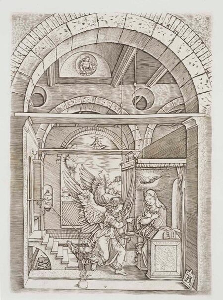 Благовещение из «Жития Девы Марии», Дюрер, Германия, 1511 г. Благовещение из «Жития Девы Марии», Раймонди, Итаилия, около 1511 г.