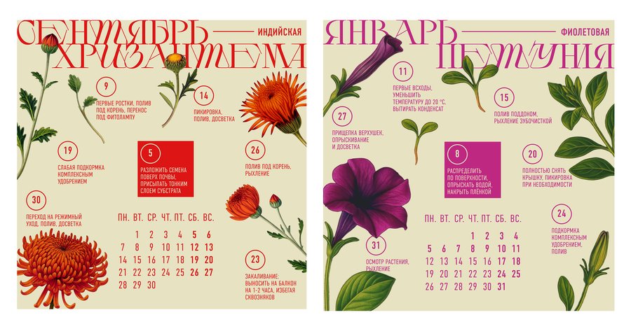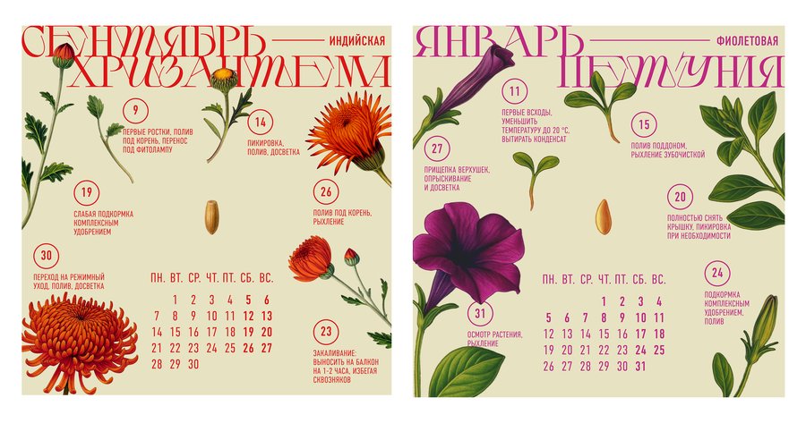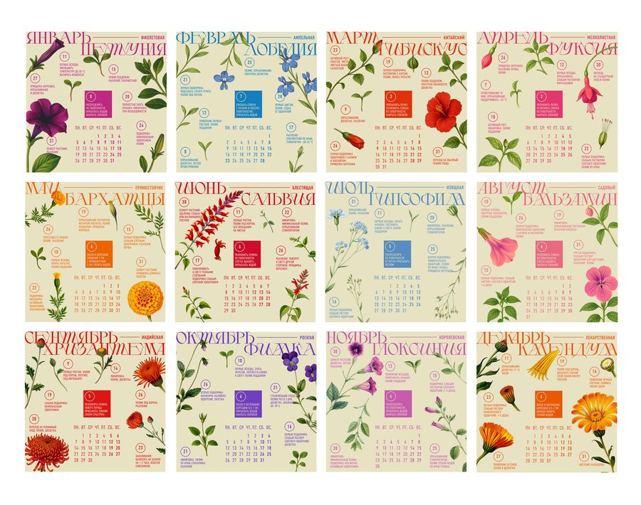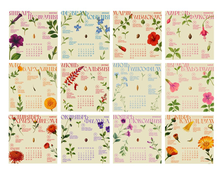 календарь, в котором каждый месяц — это новое растение и новый пакетик с семенами на протяжении месяца вам даются рекомендации по выращиванию растения, чтобы к концу года вы смогли вырастить у себя дома целый ботанический сад