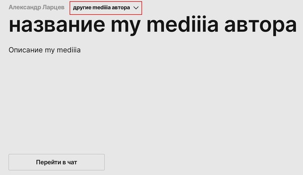 1. Открыть Профиль → my mediiia → Нажать на выпадающий список другие mediiia автора → Нажать на канал из списка.