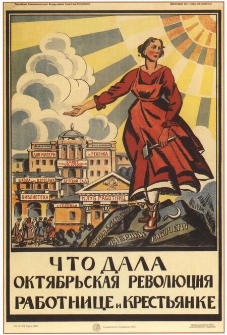 плакат «Что дала Октябрьская революция работнице и крестьянке» 1920 года неизвестного художника.