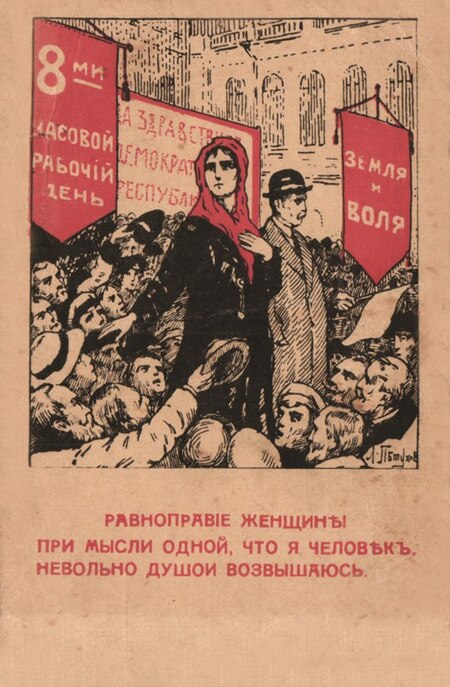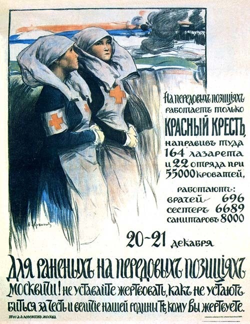 Если в начале века женщина была объектом эстетизации (утонченные дамы модерна в рекламе) или идеализированным символом искусства, то с началом Первой мировой войны её образ был взят на вооружение государственной пропагандой. Она стала «Родиной-Матерью», скорбящей вдовой или сестрой милосердия — сакральным символом жертвенности и долга, визуализируя идеи «Православия, Самодержавия, Народности».