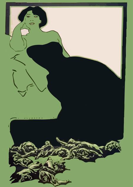 Плакат выполнен в стиле, переходном от академизма к модерну. Здесь нет еще той декоративной абстракции, которую мы увидим у Сомова, но уже заметен интерес к типизации образа и символичности.