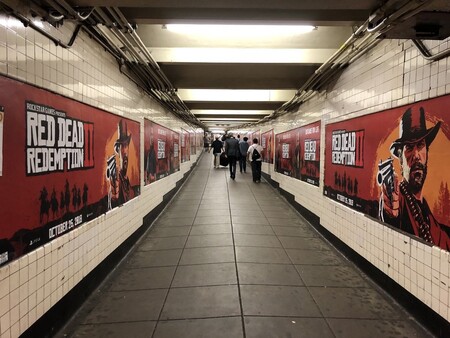 Постеры Red Dead Redemption 2 размещенные в метро.