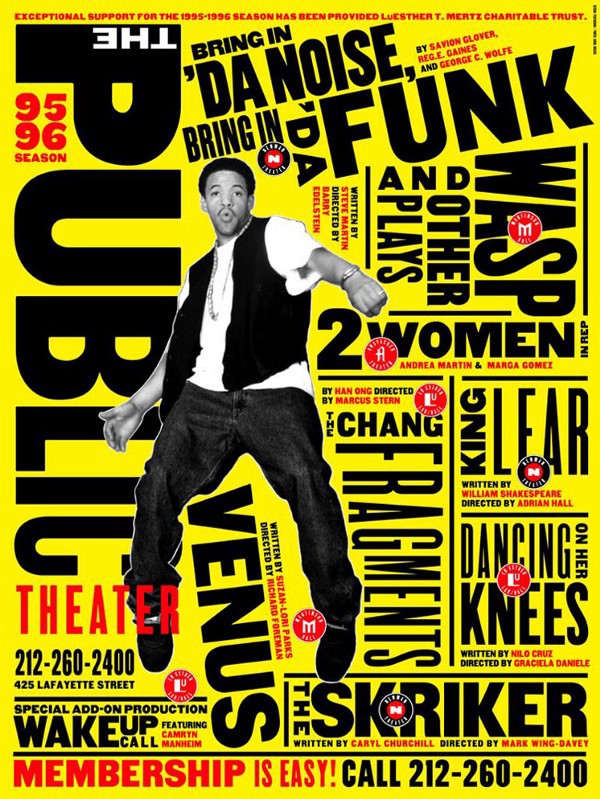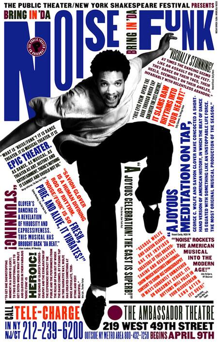 Paula Scher, плакаты для шоу Bring in 'Da Noise, Bring in 'Da Funk, 1995 год.