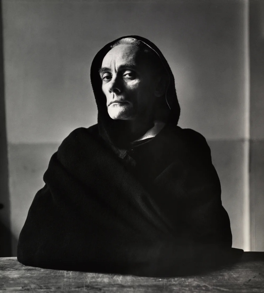 Ирвин Пенн и Ричард Аведон работали с портретом совершенно по-разному. У Пенна люди в кадре часто выглядят собранными, зажатыми. Его портреты построены на сдержанности и внутренней неподвижности. Героям в кадре словно запретили расслабляться.