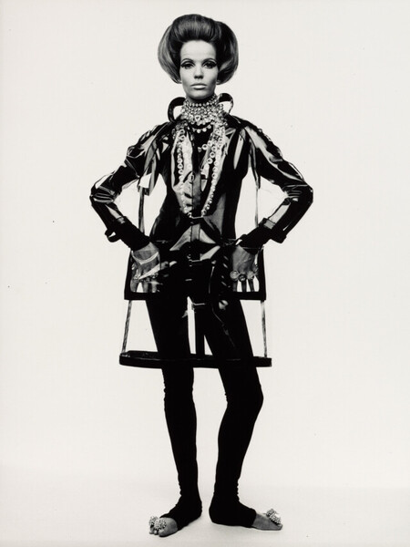 Верушка, платье Кимберли, Нью-Йоркская студия, январь 1967 г. Фотограф Ричард Аведон Прозрачный плащ (Верушка), Нью-Йорк, 1965 год. Фотограф Ирвин Пенн