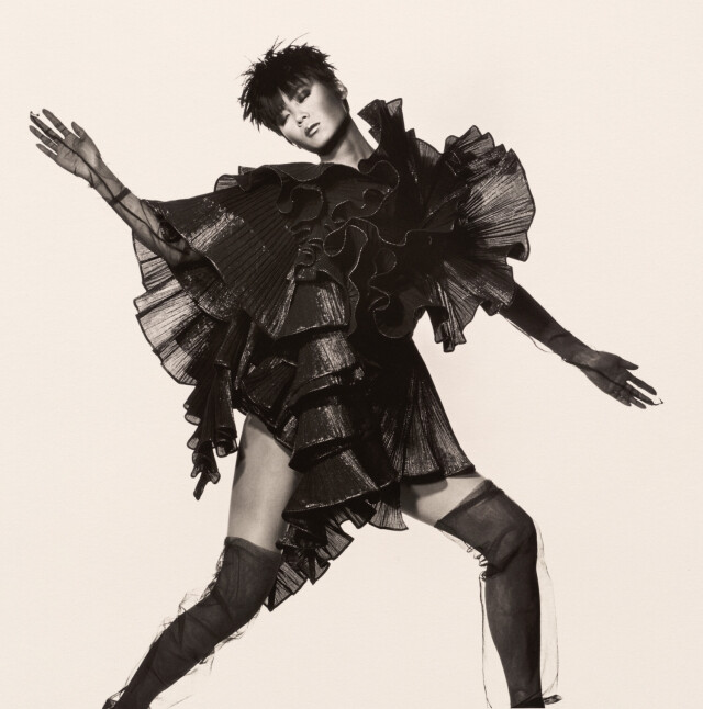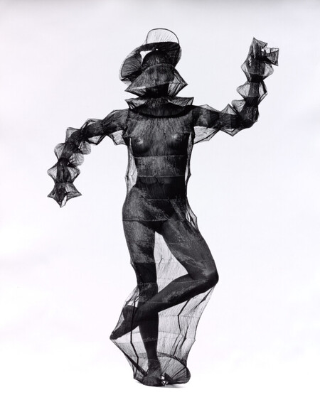 Стефани Сеймур, халат и платья Chanel, апрель 1995 Фотограф Ричард Аведон Молодая женщина в сети (дизайн Мияке), Нью-Йорк, 1993 г. Фотограф Ирвин Пенн