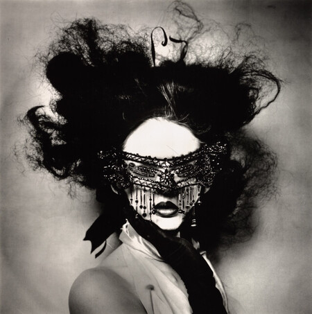 Твигги, Волосы Ара Галлант, Парижская студия, январь 1968 г. Фотограф Ричард Аведон Молодая женщина с маской из бисера, Нью-Йорк, 2004 г. Фотограф Ирвин Пенн