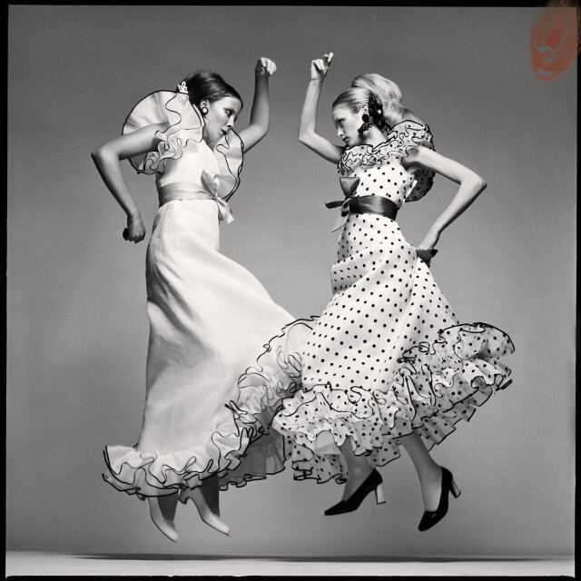 У Аведона модель всегда находится в движении: она прыгает, играет с пространством, создаёт ощущение лёгкости. Даже если кадр постановочный, в нём чувствуется момент, естественность и желание модели проявить себя. Снимается не просто фигура в наряде, а живой человек, который взаимодействует с фотографом.