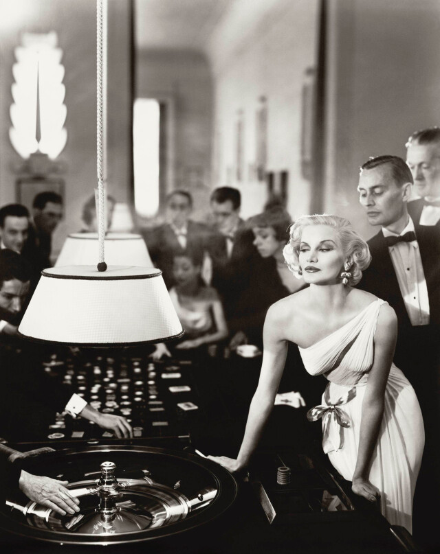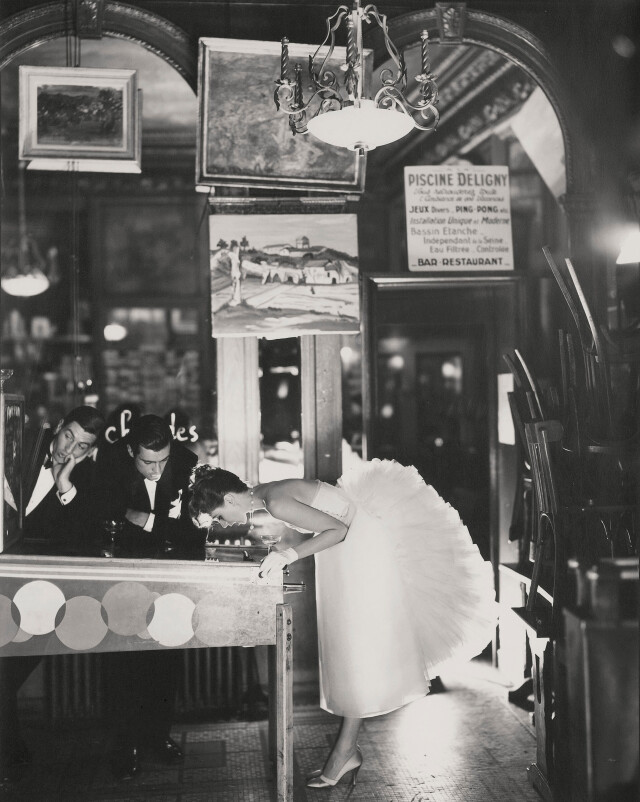 Санни Харнетт, Вечернее платье от Греса, Казино, Ле-Туке, август 1954 г. Сьюзи Паркер, вечернее платье от Lanvin-Castillo, Кафе изящных искусств, Париж, август 1956. Фотограф Ричард Аведон
