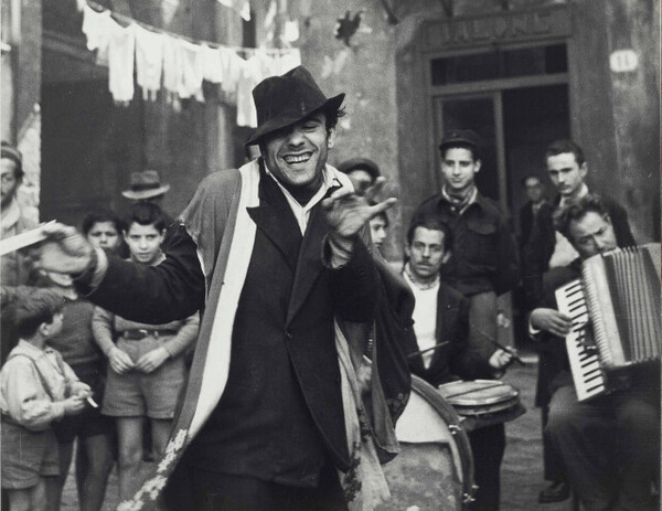 Разницу хорошо видно на примере музыкантов. У Аведона кадр из Палермо выглядит живым: музыканты свободные, естественные, как будто он сам стоит рядом, подпевал им и поймал момент на ходу — почти в своём фирменном «прыжке». Пространство помогает им быть собой. У Пенна музыкантов он помещает в студию. Для творческих людей это непривычная, «собранная» среда, и это сразу чувствуется: они уже не свободные исполнители, а просто люди, поставленные на фон. Вместо живого момента появляется ощущение остановки. Это и есть главное различие — Аведон идёт в пространство людей, а Пенн приводит людей в своё.