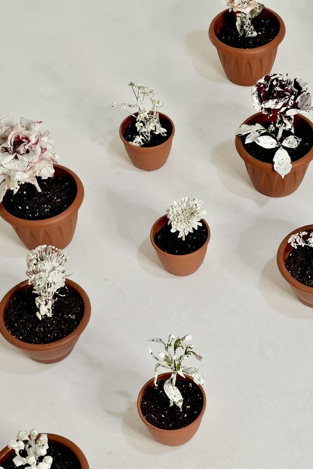 Сад, состоящий из цветов, которые были куплены в магазине и высажены в горшки, а после покрыты гипсом — подобие статуй из пока ещё живых, но очень близких к смерти растений. Они застыли в своём состоянии, словно оставленные временем.