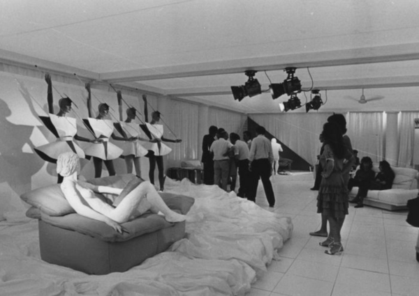 Экспозиции Salone этого периода стали напоминать театральные постановки — с яркими стенами, зеркальными поверхностями, неоновыми лампами. Появился новый тип стенда — не демонстрация мебели, а «сцена идей».
