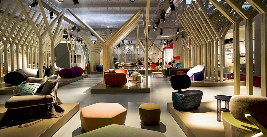 В 1990-е годы появляются павильоны, разработанные архитекторами — экспозиции Cappellini, Vitra и Moroso строились как пространства архитектурного высказывания, где мебель становилась частью среды.