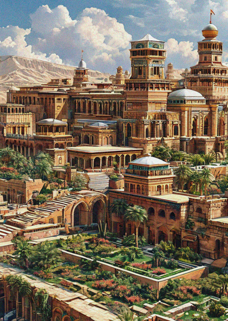 В городе были раскопаны два дворца: - «Южный дворец-крепость, который был расширен и украшен при Навуходоносоре втором». Он представлял собой неправильный прямоугольник и имел пять внутренних дворов. Стены украшались синим глазурованным кирпичом. Также имелся продольный тронный зал. В северо-восточном углу дворца находились те самые знаменитые висячие сады. - «Северный дворец-укрепление» (дворцовый музей). В нем хранились трофеи царей.
