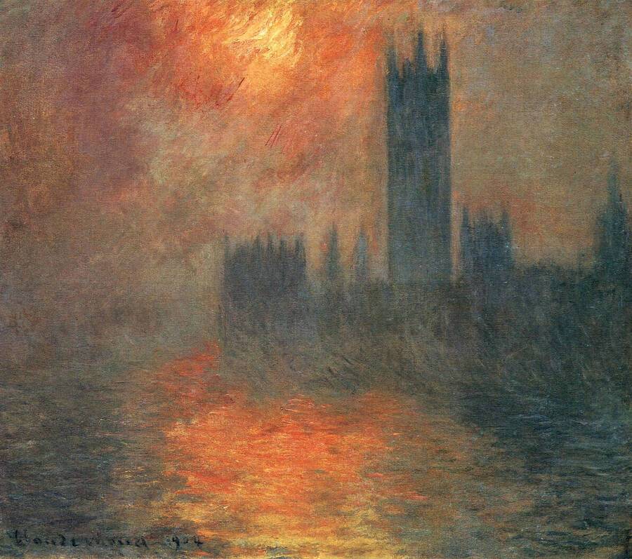 Клод Моне. Здание Парламента, Эффект солнечного света в тумане. 1904