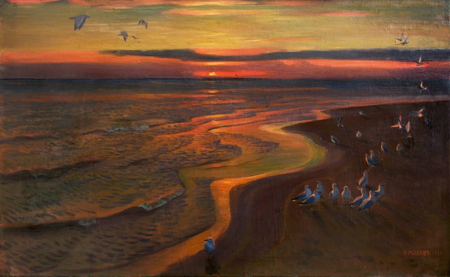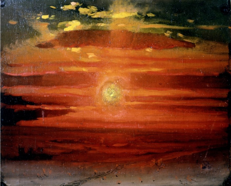 В картинах «Закат», «Закат в степи», «Закат зимой» (1900–1905, 1910-е годы) солнечный диск выдвигается на передний план как образ вечной, высшей силы. Смелая, порой обобщённая, многослойная манера нанесения мазков на холст, прямые и чёткие линии горизонта, сходящиеся с массивами облаков, резко контрастные и предельно насыщенные оттенки жёлтого, оранжевого и алого создают ощущение предельной силы света.