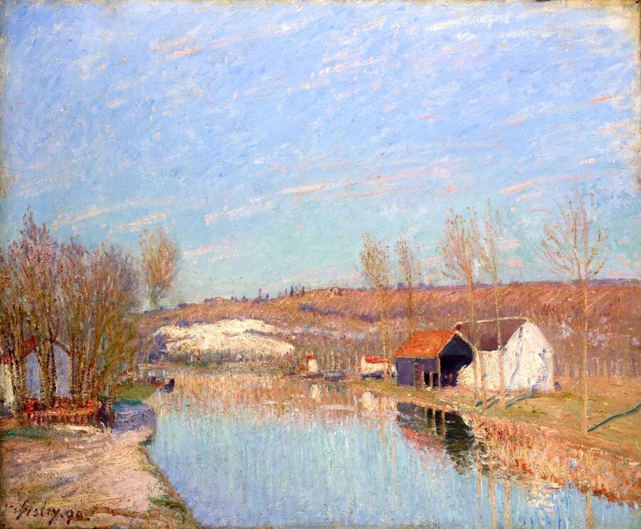 Клод Моне. Дорога в Лувесьен, Тающий снег, Закат. 1870