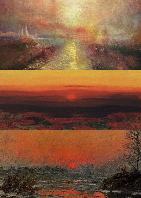 В этом контексте особенно значимы работы Уильяма Тёрнера, Клода Моне и Архипа Куинджи. Несмотря на различие художественных школ и стилей: романтизм, импрессионизм, реализм с элементами символизма — каждого из этих художников современники и последующие поколения называли «мастерами света». Такое внимание к солнечному образу позволяет выдвинуть гипотезу: в живописи XIX — начала XX века солнце сохраняет функцию, близкую к божественной — не просто физический источник света, но явление, формирующее визуальное и эмоциональное восприятие мира, атмосферу и духовный смысл художественной культуры нового и новейшего времени.