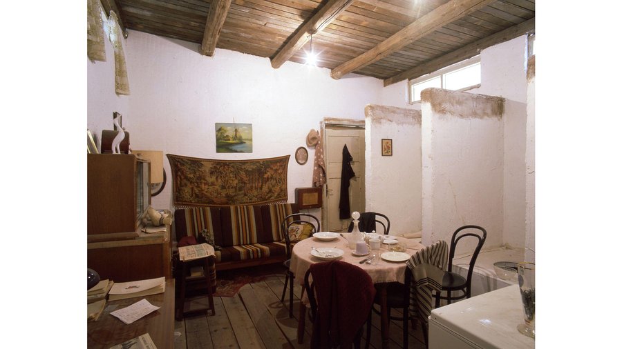 В 1970–1980-е годы коммунальная квартира становится сценой для раскрытия глубоких психологических и социальных структур позднесоветской жизни. Инсталляции Ильи Кабакова «Человек, улетевший в космос из своей комнаты» (1985) и «Туалет» (1992) демонстрируют, как теснота, хаотичность и вынужденная открытость коммунального существования превращаются в метафору человеческих желаний, утечек и невозможных побегов. Через реконструкцию бытовых деталей художник показывает, что повседневная среда формирует не только образ жизни, но и способы фантазировать о его преодолении. Коммуналка у Кабакова — это пространство, в котором личное постоянно сталкивается с коллективным, а мечта — с давящей материальностью вещей. Таким образом, бытовой интерьер становится инструментом анализа ироничной, болезненной и одновременно мифологизированной реальности позднесоветского опыта.