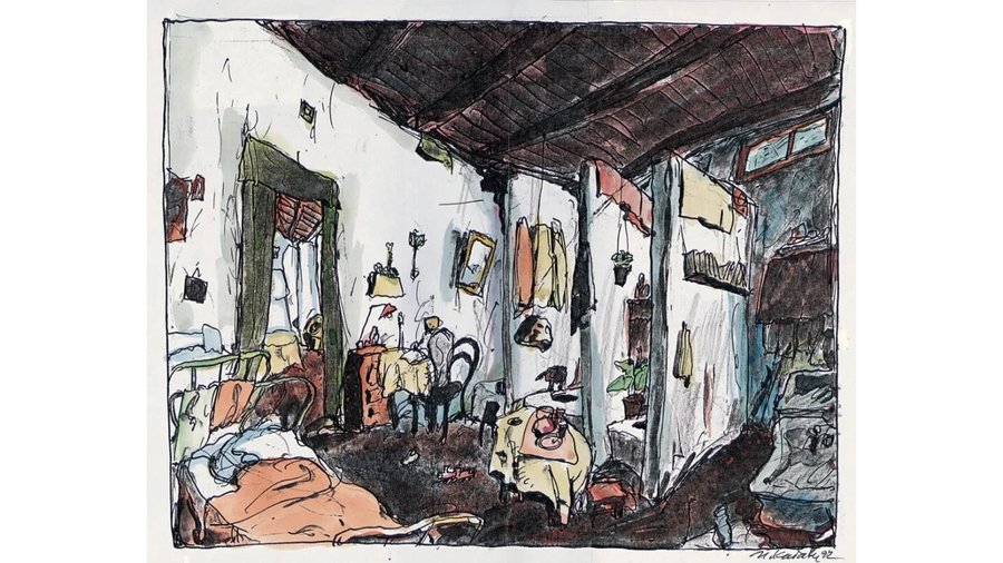 Илья Кабаков, «Человек, улетевший в космос из своей комнаты», 1985 г.