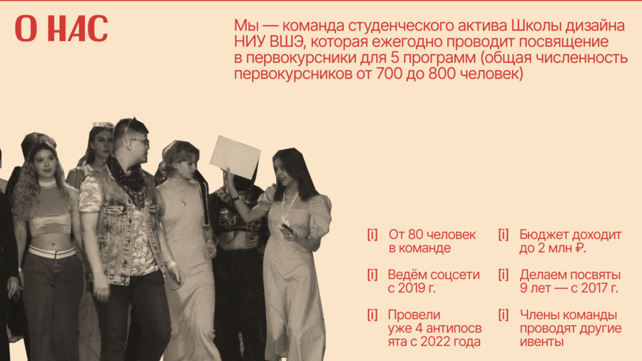 Организуют посвяты отобранные заранее студенты Школы дизайна. В организации есть своя структура: