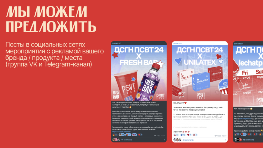 В рамках сотрудничества бренд предоставил нам 300 презервативов, которые раздавались на мероприятии. С нашей стороны был опубликован рекламный пост.