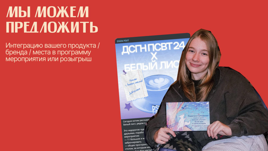 В рамках сотрудничества я договорилась на предоставление 12 цветных и 3 ч/б пленок, на которые проводилась съемка на мероприятии. Помимо продукции нам так же предоставили скидку на сканирование катушек. С нашей стороны был опубликован рекламный пост о лаборатории!