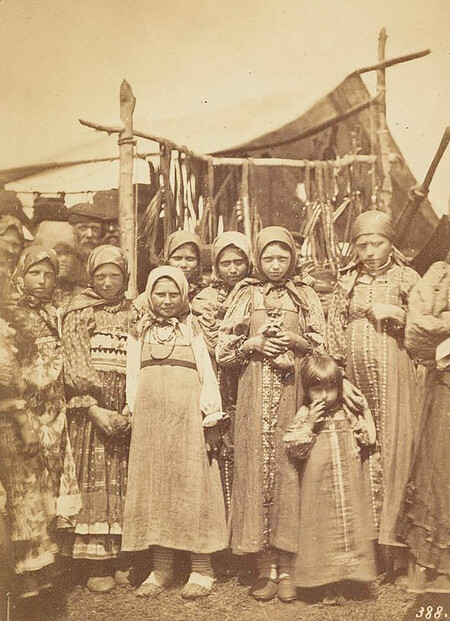 «Группа девочек в традиционных крестьянских костюмах», Вильям Каррик, Симбирская губерния, 1870‑е годы. / «Крестьяне рядом с телегой», Вильям Каррик, Симбирская губерния, 1870‑е годы.