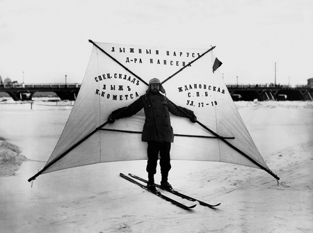 «Состязания конькобежцев. На старте основатель клуба „Кречет“ Г. Киселев. Слева с флагом Г. Трифонов», Карл Булла, 1914 год. / «Демонстрация лыжного паруса доктора Нансена», Карл Булла, 1914 год.