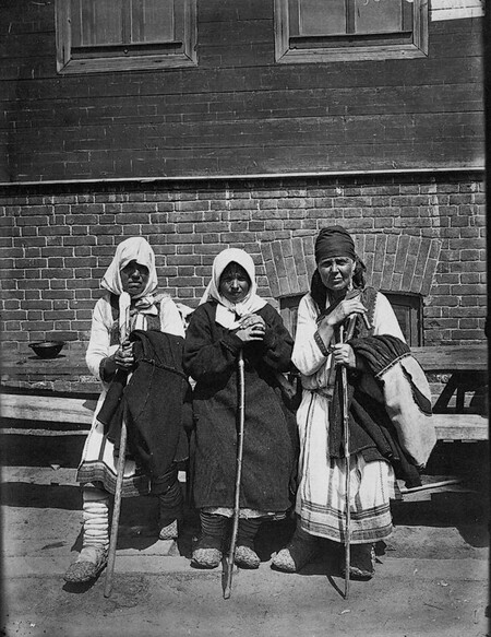 «Странник в Серафимо-Дивеевском женском монастыре», Максим Дмитриев, 1904 год. / «Типы богомолок в Серафимо-Понетаевском женском монастыре», Максим Дмитриев, 1904 год.