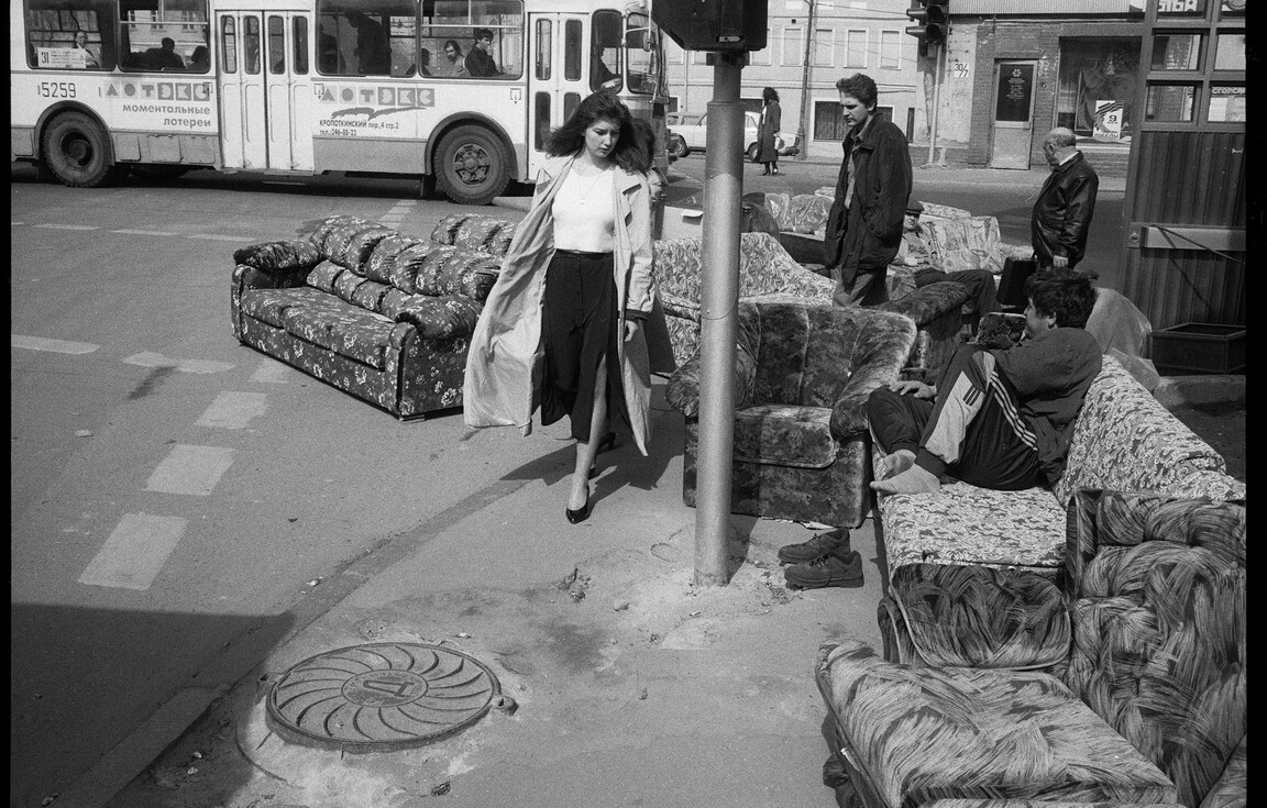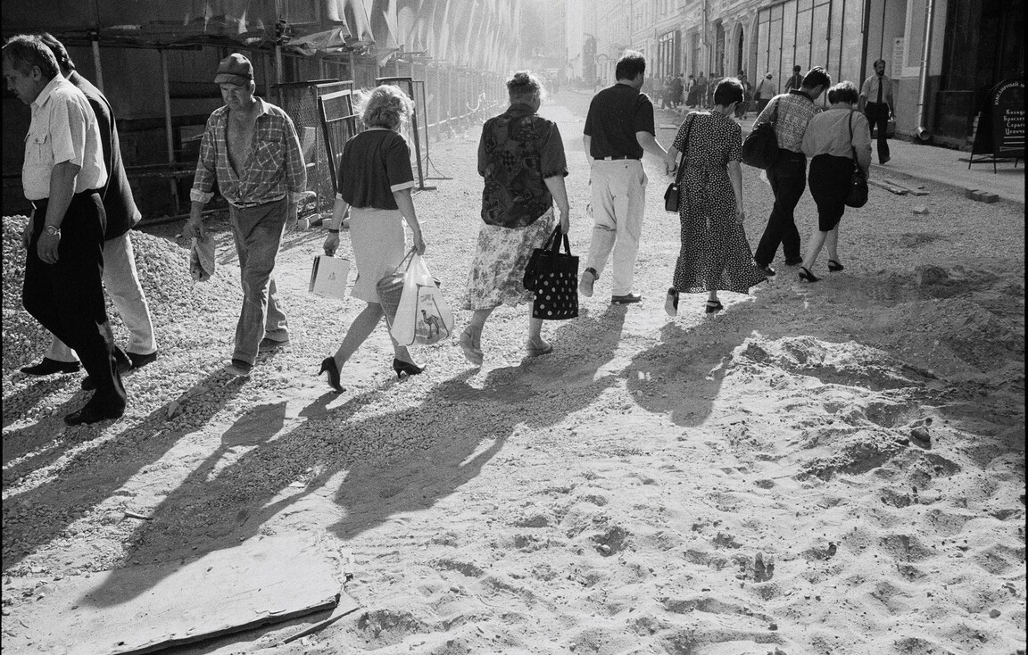 1990-е в России становятся временем визуального перелома и поисков нового языка. Уличная фотография освобождается от прежних правил и все больше превращается в стрит, способ прямого разговора с реальностью. Город перестаёт быть декорацией — он становится главным героем: хаотичный, небезопасный, изменяющийся на глазах. На снимках появляются субкультуры, криминализованные пространства, пустующие здания, реклама, стихийная торговля и новая городская свобода. В моду входит грубая документальность, выраженная в зернистой плёнке и резком кадре. Фотографы уже не стремятся идеализировать повседневность — они фиксируют странность и противоречивость времени, создавая язык переходной эпохи.