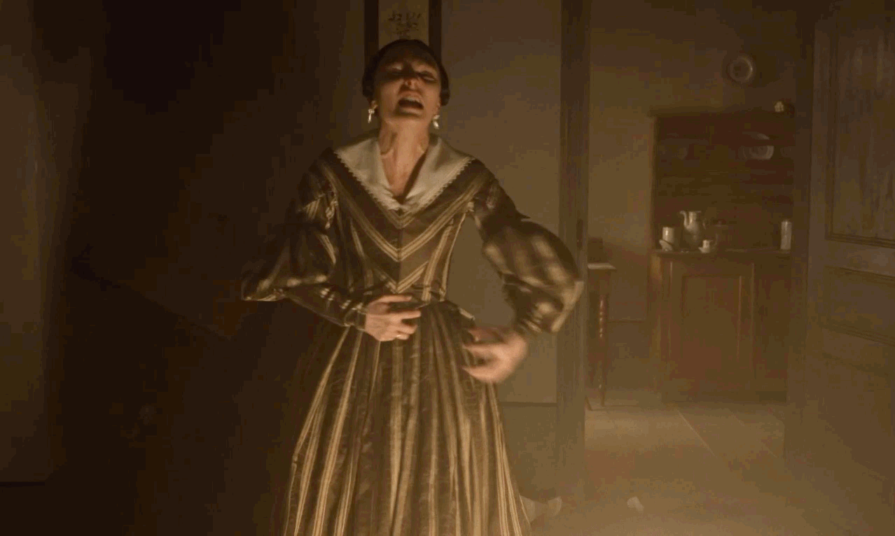 В свою очередь тени в «Бабадуке» не просто фон, они живут своей жизнью. Они сгущаются, когда появляется сам Бабадук, подчёркивая его нематериальную, пугающую природу. Тени ползут по стенам дома, создавая ощущение постоянного присутствия чего-то зловещего, выходящего из-под контроля. Это напрямую перекликается с экспрессионистским стремлением делать тени активным элементом, символизирующим страх и нечто неведомое. Дом героини редко освещён солнцем. Постоянная пасмурность, тёмные углы, тусклое освещение в комнатах — всё это визуально подчёркивает глубокую депрессию, скорбь и эмоциональное выгорание главной героини. Мрак снаружи отражает мрак внутри.