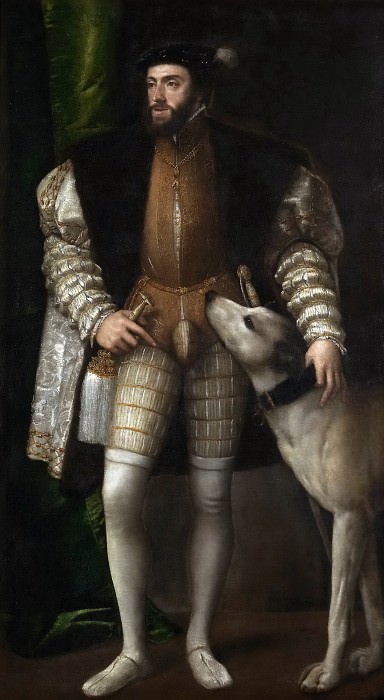 Здесь проявляется концепция Спрезатура — благородной небрежности и легкости, скрывающей приложенные усилия. Власть императора отображена не через материальные атрибуты власти, а через осанку, взгляд и уверенное владение пространством. Собака — традиционный компаньон, символизирующий верность — подчеркивает доминирование человека над природой. Тициан показывает, что величие Карла V имманентно его личности, а не атрибутам статуса, отступая от средневековой символичности к гуманистическому антропоцентризму, где личность монарха становится самоценным объектом исследования, а дистанция между зрителем и императором сокращается, создавая эффект физического присутствия.