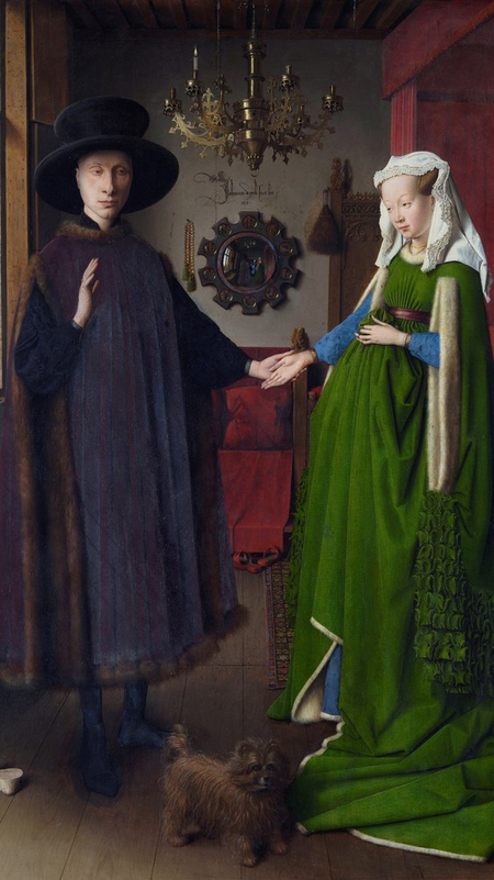 Одной из наиболее символичных и, более того, дискуссионных работ, использующих право-левую символику, является Портрет Джованни Арнольфини и его жены Джованны Ченами Яна ван Эйка. Обычно мужчина расположен справа — подчеркивающий различие в социальном статусе между полами. Однако, мы видим, что супруг держит правую руку женщины своей левой рукой, что уже совершенно нетипично.