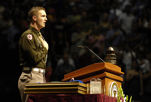 Justin McDonald произносит клятву верности флагу США во время церемонии вручения дипломов выпускникам ROTC | Unknown | 2004 Attack on Titan series | Hajime Isayama | Wit Studio | 2013