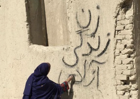 В массовых протестах после смерти Махсы Амини граффити с лозунгом «زن، زندگی، آزادی» («Женщина, жизнь, свобода») стали ключевым визуальным кодом сопротивления.