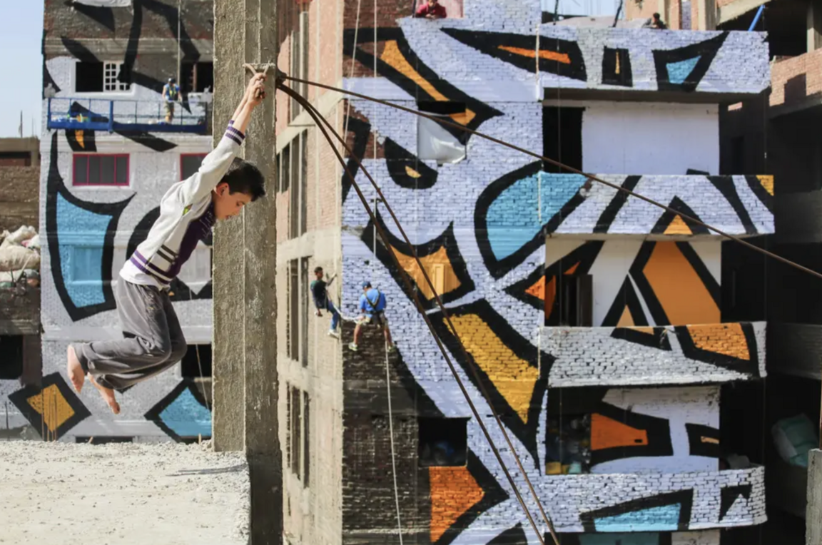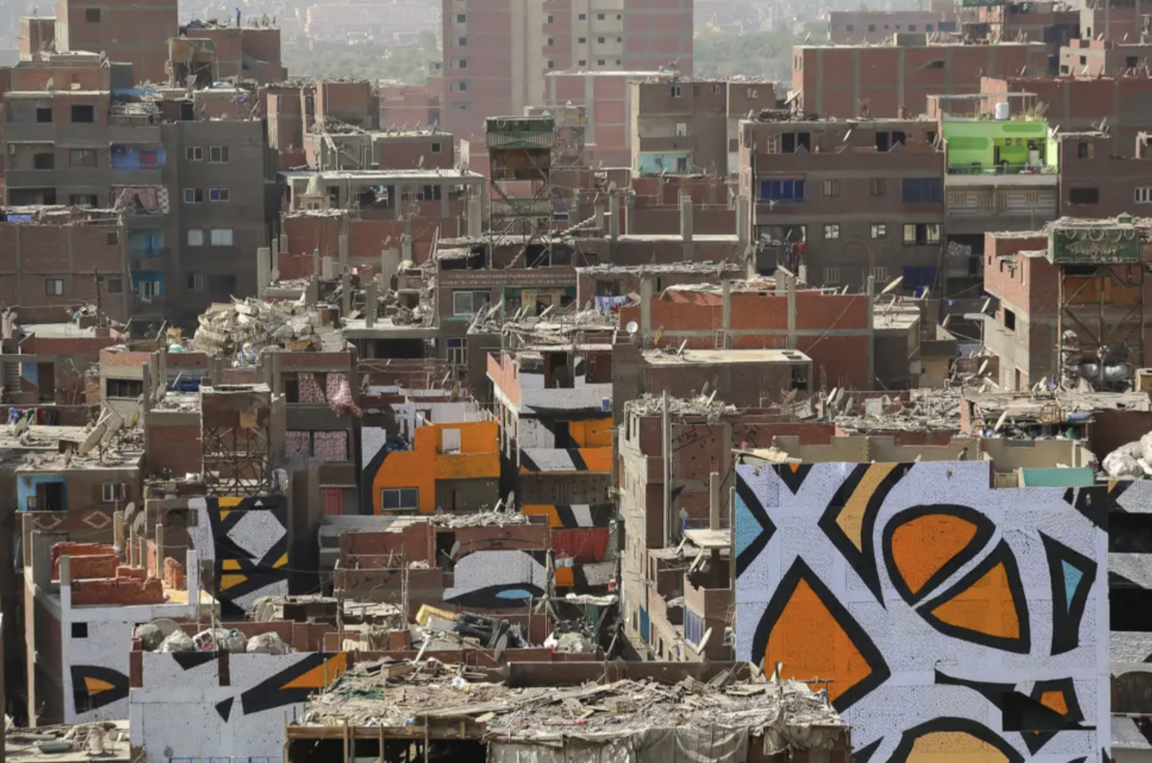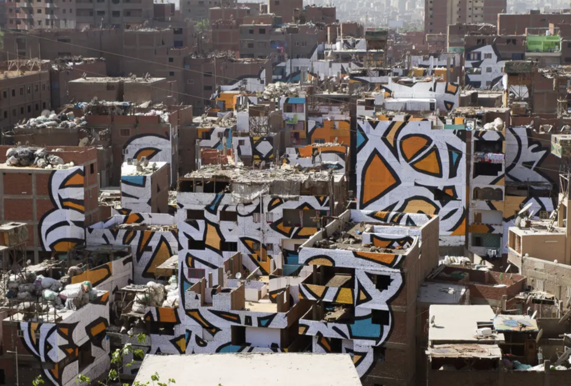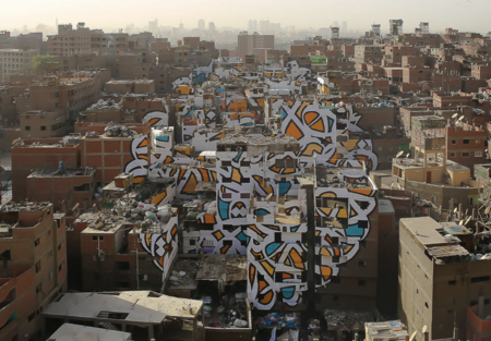 eL Seed создал аноморфный мурал, покрывающий ~50 зданий, видимый целиком только с определённой точки на горе Mokattam. На нём — цитата святого Афанасия Александрийского: