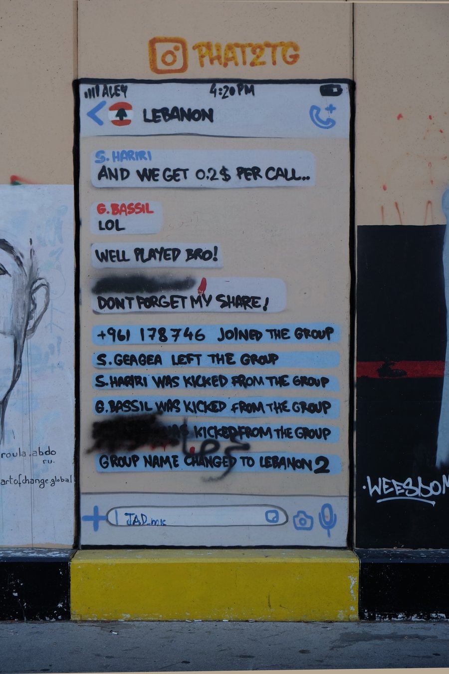 В октябре 2019, во время «Ливанской революции», улицы Бейрута, его центр, бывшие османские постройки, колонны и фасады запестрели лозунгами, рисунками, карикатурами: требование «كلّن يعني كلّن» (каждый — значит каждый), «We want it all», анти-сектантские фразы, антикоррупционные призывы, портреты «героев революции».
