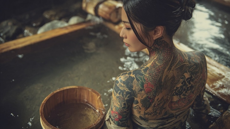 Все эти элементы объединяются в хоримоно (彫物) — масштабные композиции, которые мастерски адаптируются к анатомии тела. Татуировка не просто лежит на коже; она взаимодействует с мышцами, изгибами и контурами, подчеркивая их и создавая ощущение живого, движущегося образа. Это могут быть полные рукава (нагасодэ), татуировки на всю спину (сэнака-бори) или даже полный «костюм» (сосинбори), покрывающий почти все тело, за исключением стратегически оставленных чистых участков (например, «дорожка» на груди и животе). Выбор места и масштаба такой композиции не случаен, он глубоко связан с функциями маркера идентичности и социальной приемлемости.