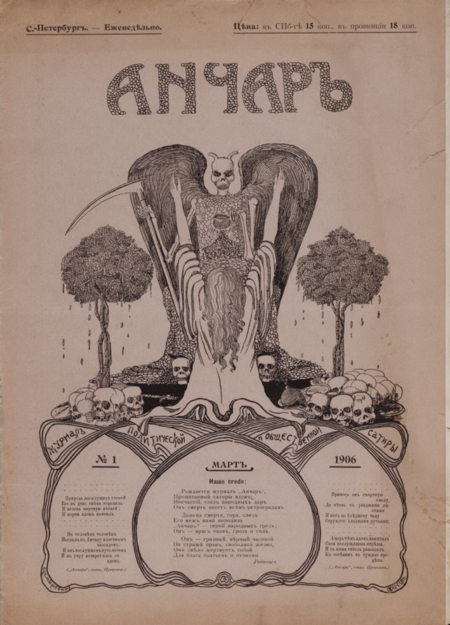 «Анчар», 1906, № 1, издательство Н. Б. Тейтедьбаума; «Спрут», 1905, № 01, Типо-Литография А. М. Менделевича