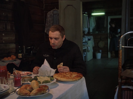 Кадры с неожиданным ужином сняты очень тепло и просто, по-домашнему. Всё это создаёт ощущение частной жизни внутри общественного пространства. Даже в строгой структуре вокзала человек способен создать локальное «тепло», не подчиняющееся логике системы.