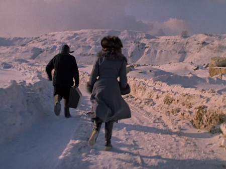 Когда Платон и Вера идут по перрону, появляется движение, которого раньше в фильма почти не было. Камера следует за ними плавно, свет становится естественным, в композиции появляется воздух. Эти кадры противопоставлены ригидности вокзала и очередей. Движение тут словно метафора живой внутренней свободы, которая появляется только между Верой и Платоном.