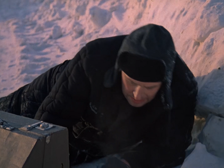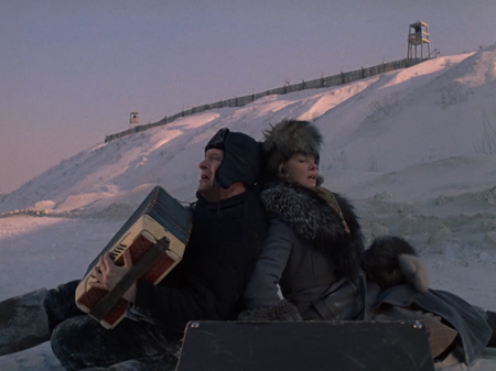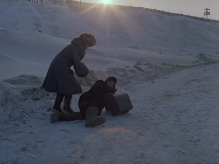 Параллельно обычной истории идут тюремные кадры с Платоном, к которому приехала жена. Он нехотя идёт через заснеженные поля несколько километров до неё. Кадры тёмные, там много пространства, но они не ощущаются свободными. Ссутулившийся герой выглядит одиноким и несвободным на фоне заснеженного пейзажа.