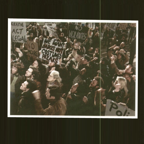 Protest, posters and newspaper headlines about ideological propaganda against Watchmen