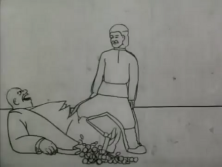 Один из первых примеров советской мультипликации, выполненной в технике плоской бумажной марионетки.