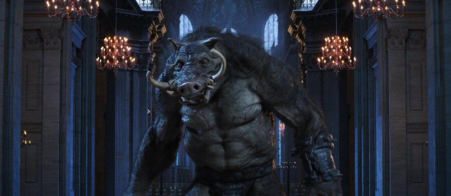 Когда Груагах стал гигантом, использовали прием motion capture. Для этого на актера в кадре был надеть специальный костюм для захвата движения и разработала CG модель кабана.