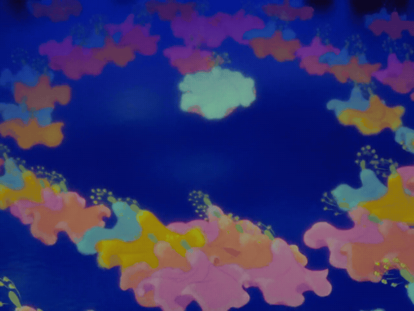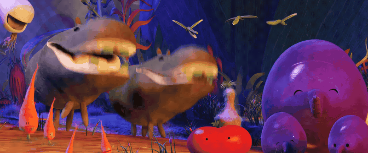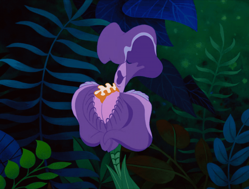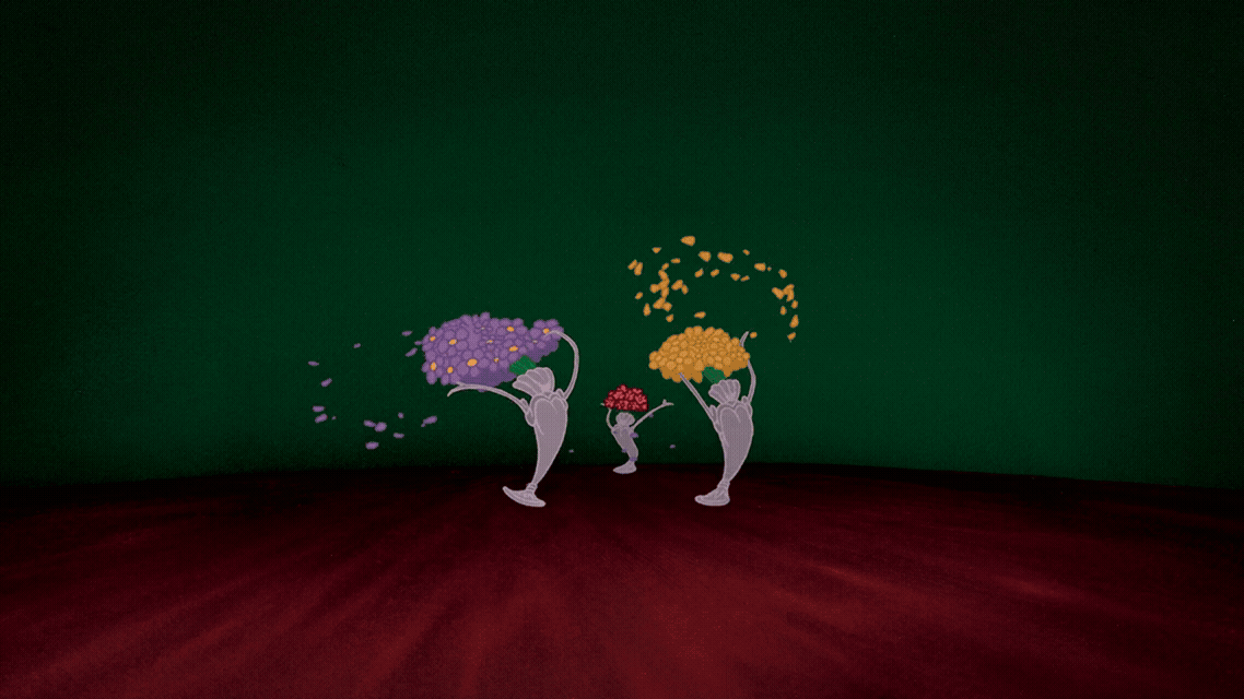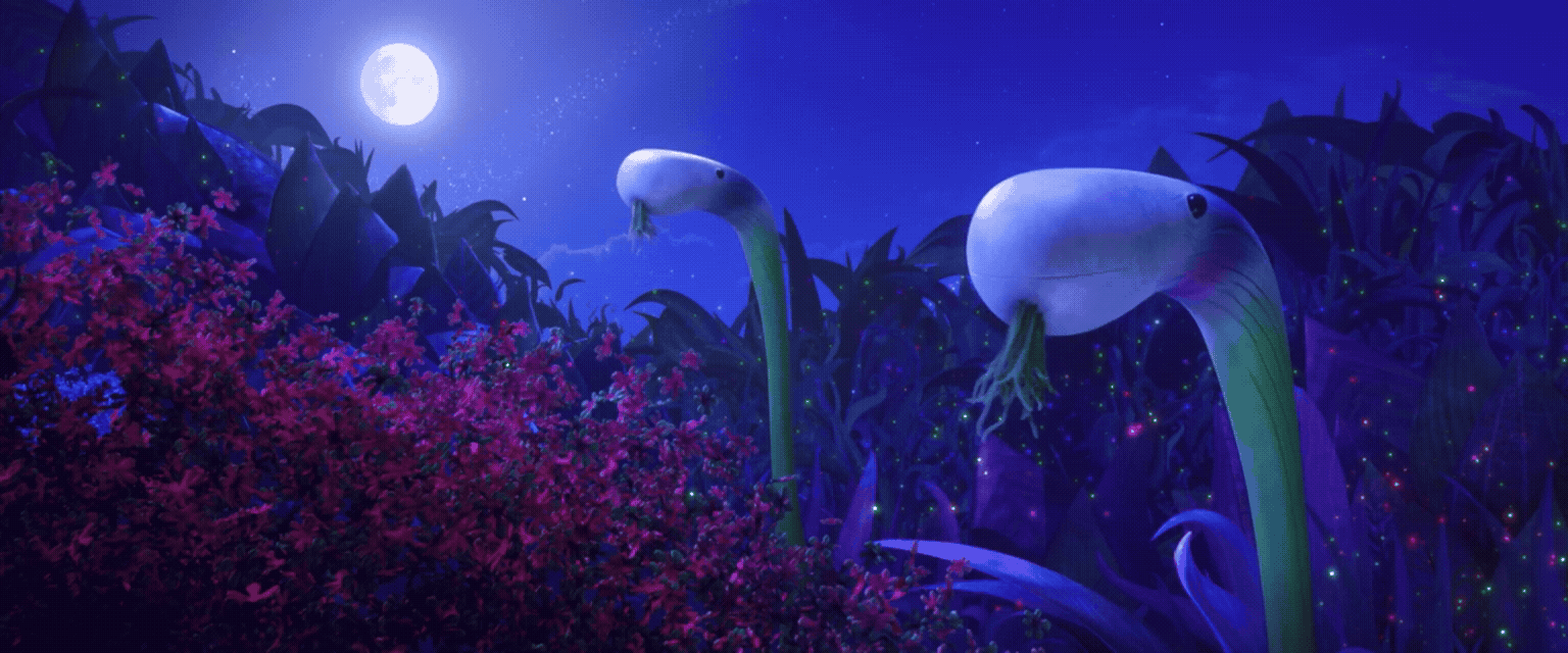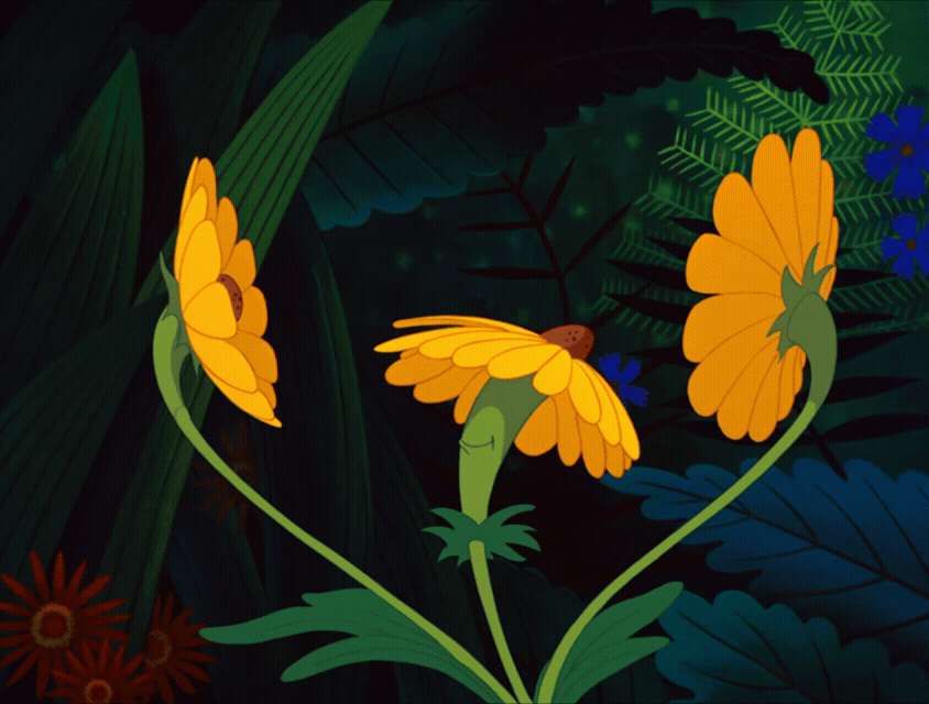 Перевернутые цветы схожи с бальными платьями, отчего во всем мультфильме изображаются танцующими.