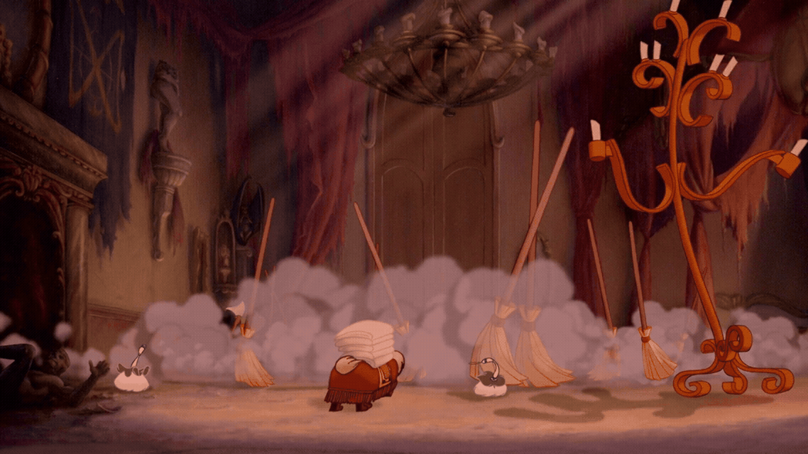 «Красавица и Чудовище», 1991, [16] Мебель защищается от нападения